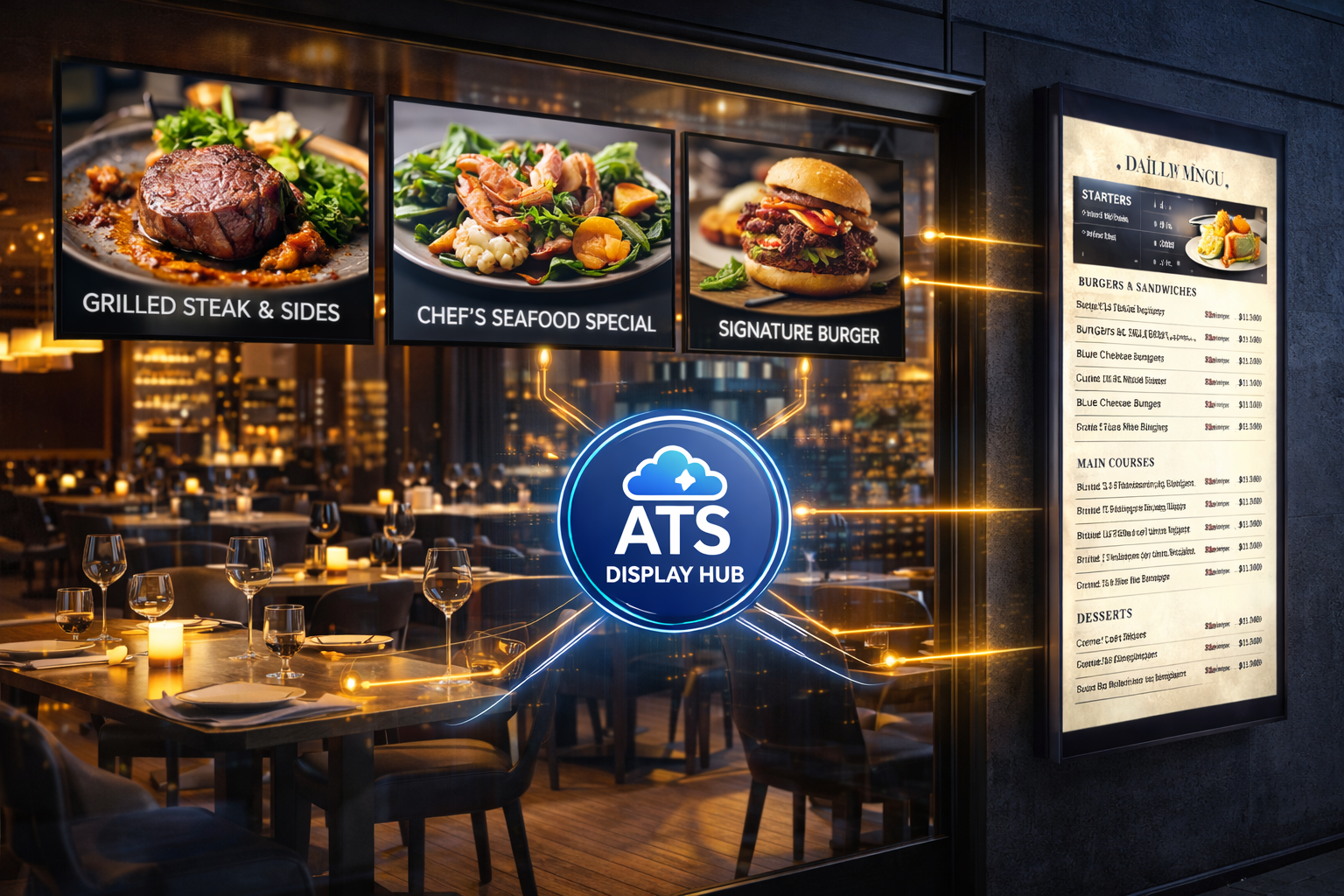 Avec ATS Display Hub, vous gérez facilement vos contenus à distance, planifiez vos campagnes et adaptez vos messages en temps réel, depuis une plateforme centralisée.